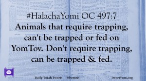 #HalachaYomi OC 497:7 Animals that require trapping, can’t be trapped or fed on YomTov. Don’t require trapping, can be trapped & fed.