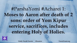 #ParshaYomi #Acharei 1: Moses to Aaron after death of 2 sons: order of Yom Kipur service, sacrifices, includes entering Holy of Holies.