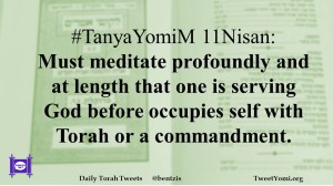 #TanyaYomiM 11Nisan: Must meditate profoundly and at length that one is serving God before occupies self with Torah or a commandment.