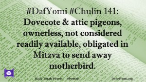 Chulin, DafYomi #DafYomi #Chulin 141 Date: April 17, 2019Author: bentzis #DafYomi #Chulin 141: Dovecote & attic pigeons, ownerless, not considered readily available, obligated in Mitzva to send away motherbird. Share this: Share on X (Opens in new window) X Share on Facebook (Opens in new window) Facebook Like Loading... Related