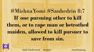#MishnaYomi #Sanhedrin 8:7 If one pursuing other to kill them, or to rape man or betrothed maiden, allowed to kill pursuer to save from sin.