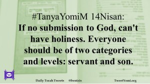 #TanyaYomiM 14Nisan: If no submission to God, can’t have holiness. Everyone should be of two categories and levels: servant and son.