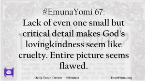#EmunaYomi 67: Lack of even one small but critical detail makes God’s lovingkindness seem like cruelty. Entire picture seems flawed.
