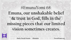 #EmunaYomi 68: Emuna, our unshakable belief & trust in God, fills in the missing pieces that our limited vision sometimes creates.