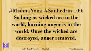 #MishnaYomi #Sanhedrin 10:6 So long as wicked are in the world, burning anger is in the world. Once the wicked are destroyed, anger removed.