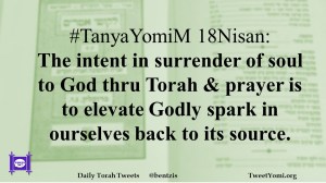 #TanyaYomiM 18Nisan: The intent in surrender of soul to God thru Torah & prayer is to elevate Godly spark in ourselves back to its source.