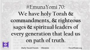 #EmunaYomi 70: We have holy Torah & commandments, & righteous sages & spiritual leaders of every generation that lead us on path of truth.