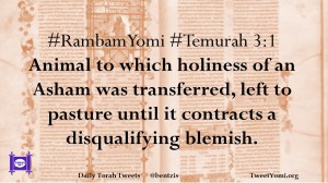 #RambamYomi #Temurah 3:1 Animal to which holiness of an Asham was transferred, left to pasture until it contracts a disqualifying blemish.