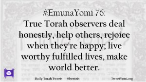 #EmunaYomi 76: True Torah observers deal honestly, help others, rejoice when they’re happy; live worthy fulfilled lives, make world better.