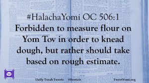 #HalachaYomi OC 506:1 Forbidden to measure flour on Yom Tov in order to knead dough, but rather should take based on rough estimate.