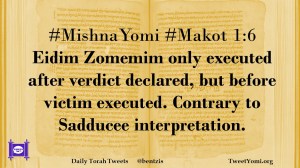 #MishnaYomi #Makot 1:6 Eidim Zomemim only executed after verdict declared, but before victim executed. Contrary to Sadducee interpretation.