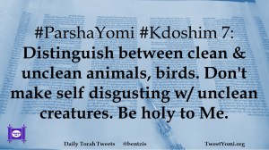 #ParshaYomi #Kdoshim 7: Distinguish between clean & unclean animals, birds. Don’t make self disgusting w/ unclean creatures. Be holy to Me.
