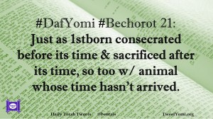 Bechorot, DafYomi #DafYomi #Bechorot 21 Date: May 9, 2019Author: ysspitz #DafYomi #Bechorot 21: Just as 1stborn consecrated before its time & sacrificed after its time, so too w/ animal whose time hasn’t arrived. Share this: Share on X (Opens in new window) X Share on Facebook (Opens in new window) Facebook Like Loading... Related