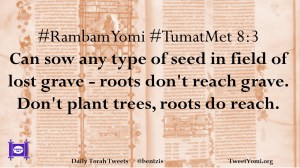 #RambamYomi #TumatMet 8:3 Can sow any type of seed in field of lost grave – roots don’t reach grave. Don’t plant trees, roots do reach.