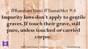 #RambamYomi #TumatMet 9:4 Impurity laws don’t apply to gentile graves. If touch their grave, still pure, unless touched or carried corpse.