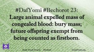 Bechorot, DafYomi #DafYomi #Bechorot 23 Date: May 10, 2019Author: ysspitz #DafYomi #Bechorot 23: Large animal expelled mass of congealed blood: bury mass; future offspring exempt from being counted as firstborn. Share this: Share on X (Opens in new window) X Share on Facebook (Opens in new window) Facebook Like Loading... Related