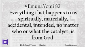 #EmunaYomi 82: Everything that happens to us spiritually, materially, accidental, intended, no matter who or what the catalyst, is from God.