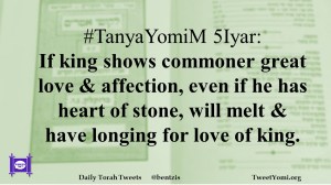 #TanyaYomiM 5Iyar: If king shows commoner great love & affection, even if he has heart of stone, will melt & have longing for love of king.