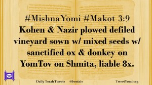 #MishnaYomi #Makot 3:9 Kohen & Nazir plowed defiled vineyard sown w/ mixed seeds w/ sanctified ox & donkey on YomTov on Shmita, liable 8x.