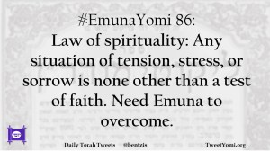 #EmunaYomi 86: Law of spirituality: Any situation of tension, stress, or sorrow is none other than a test of faith. Need Emuna to overcome.