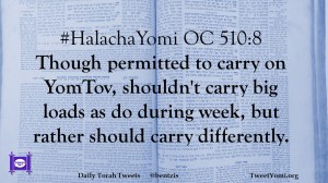 #HalachaYomi OC 510:8 Though permitted to carry on YomTov, shouldn’t carry big loads as do during week, but rather should carry differently.