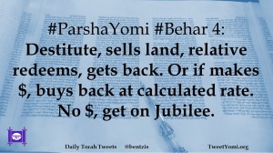 #ParshaYomi #Behar 4: Destitute, sells land, relative redeems, gets back. Or if makes $, buys back at calculated rate. No $, get on Jubilee.