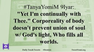 #TanyaYomiM 9Iyar: “Yet I’m continually with Thee.” Corporeality of body doesn’t prevent union of soul w/ God’s light, Who fills all worlds.