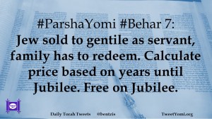 #ParshaYomi #Behar 7: Jew sold to gentile as servant, family has to redeem. Calculate price based on years until Jubilee. Free on Jubilee.