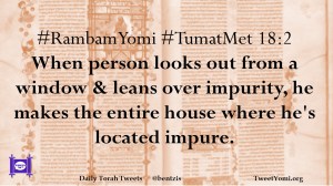 #RambamYomi #TumatMet 18:2 When person looks out from a window & leans over impurity, he makes the entire house where he’s located impure.