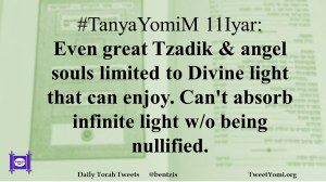 #TanyaYomiM 11Iyar: Even great Tzadik & angel souls limited to Divine light that can enjoy. Can’t absorb infinite light w/o being nullified.