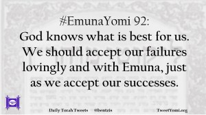 #EmunaYomi 92: God knows what is best for us. We should accept our failures lovingly and with Emuna, just as we accept our successes.