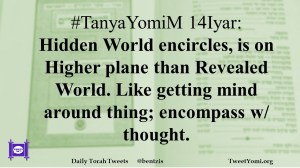#TanyaYomiM 14Iyar: Hidden World encircles, is on Higher plane than Revealed World. Like getting mind around thing; encompass w/ thought.