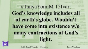 #TanyaYomiM 15Iyar: God’s knowledge includes all of earth’s globe. Wouldn’t have come into existence w/o many contractions of God’s light.