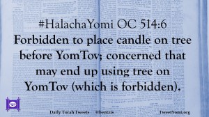 #HalachaYomi OC 514:6 Forbidden to place candle on tree before YomTov; concerned that may end up using tree on YomTov (which is forbidden).