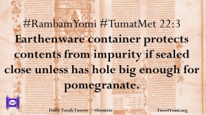 #RambamYomi #TumatMet 22:3 Earthenware container protects contents from impurity if sealed close unless has hole big enough for pomegranate.