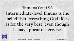 #EmunaYomi 96: Intermediate-level Emuna is the belief that everything God does is for the very best, even though it may appear otherwise.