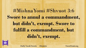 #MishnaYomi #Shvuot 3:6 Swore to annul a commandment, but didn’t, exempt. Swore to fulfill a commandment, but didn’t, exempt.