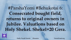 #ParshaYomi #Behukotai 6: Consecrated bought field, returns to original owners in Jubilee. Valuations based on Holy Shekel. Shekel=20 Gera.