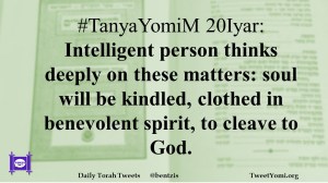 #TanyaYomiM 20Iyar: Intelligent person thinks deeply on these matters: soul will be kindled, clothed in benevolent spirit, to cleave to God.