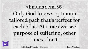 #EmunaYomi 99: Only God knows optimum tailored path that’s perfect for each of us. At times we see purpose of suffering, other times, don’t.