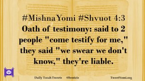 #MishnaYomi #Shvuot 4:3 Oath of testimony: said to 2 people “come testify for me,” they said “we swear we don’t know,” they’re liable.