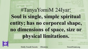 #TanyaYomiM 24Iyar: Soul is single, simple spiritual entity; has no corporeal shape, no dimensions of space, size or physical limitations.