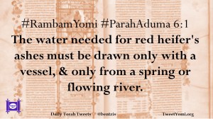 #RambamYomi #ParahAduma 6:1 The water needed for red heifer’s ashes must be drawn only with a vessel, & only from a spring or flowing river.