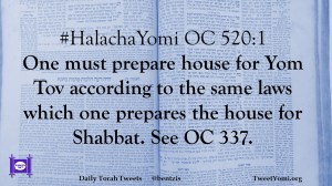 #HalachaYomi OC 520:1 One must prepare house for Yom Tov according to the same laws which one prepares the house for Shabbat. See OC 337.