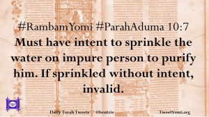 #RambamYomi #ParahAduma 10:7 Must have intent to sprinkle the water on impure person to purify him. If sprinkled without intent, invalid.