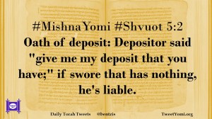 #MishnaYomi #Shvuot 5:2 Oath of deposit: Depositor said “give me my deposit that you have;” if swore that has nothing, he’s liable.