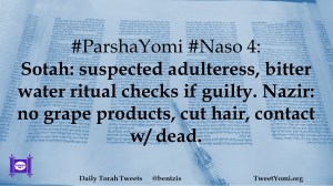 #ParshaYomi #Naso 4: Sotah: suspected adulteress, bitter water ritual checks if guilty. Nazir: no grape products, cut hair, contact w/ dead.