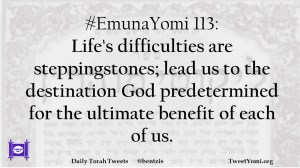 #EmunaYomi 113: Life’s difficulties are steppingstones; lead us to the destination God predetermined for the ultimate benefit of each of us.