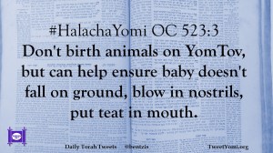 #HalachaYomi OC 523:3 Don’t birth animals on YomTov, but can help ensure baby doesn’t fall on ground, blow in nostrils, put teat in mouth.