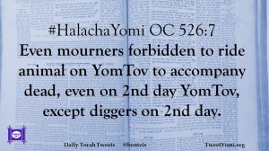 #HalachaYomi OC 526:7 Even mourners forbidden to ride animal on YomTov to accompany dead, even on 2nd day YomTov, except diggers on 2nd day.